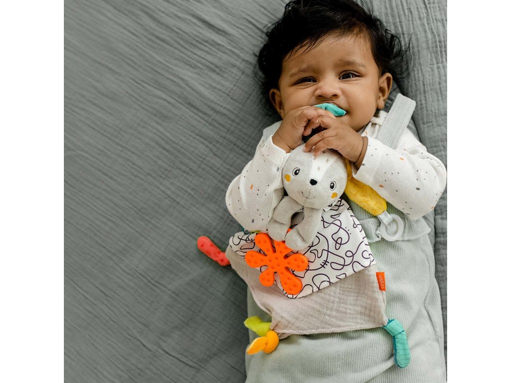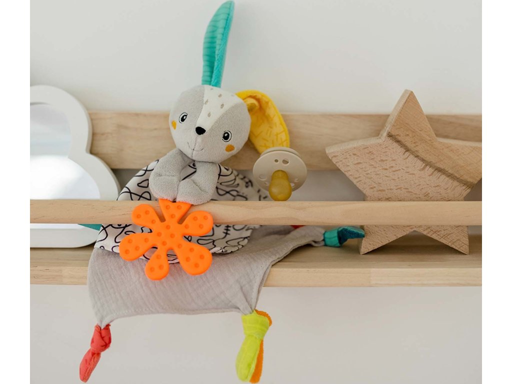 miminka a tím se děťátku rozvíjí hmatové smysly. Praktický kroužek na dudlík