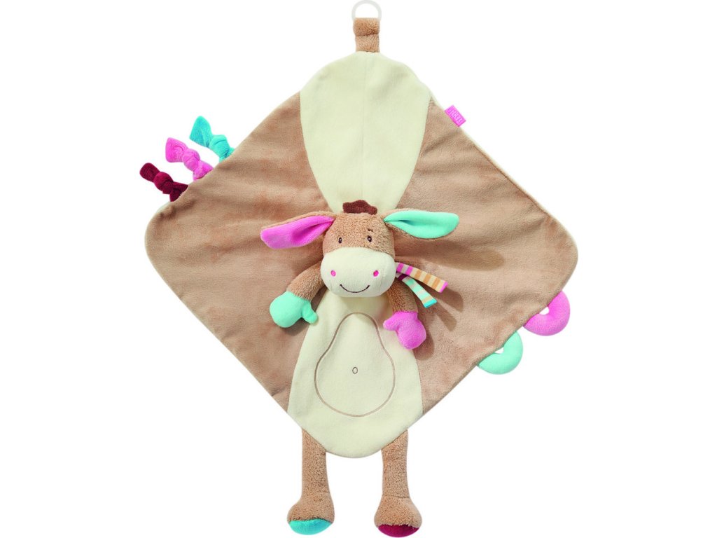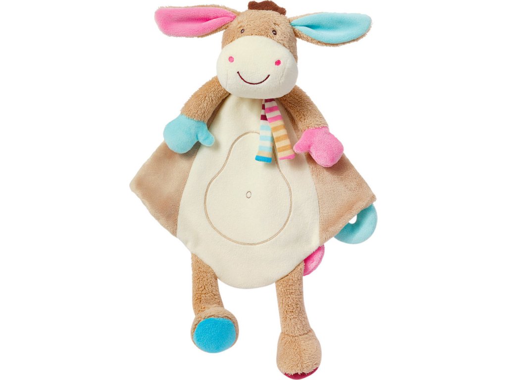 Roztomilý muchláček oslík se stane nerozlučným kamarádem Vašeho děťátka. V krásném pastelovém barevném provedení a z příjemného materiálu je vhodný jak pro holčičku, tak i pro chlapečka. S praktickým poutkem na umístění dudlíku.
