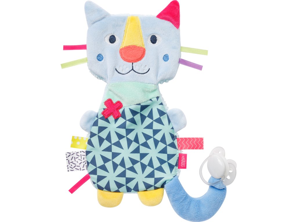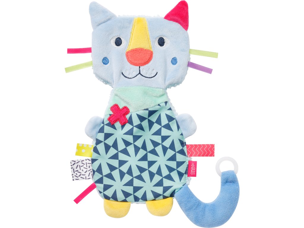Barevná zvlněná kočička z kolekce COLOR Friends vzbuzuje zvědavost dítěte, podporuje vědomé uchopení a podporuje smysly dítěte.Díky směsi materiálů a stimulujícímu zvuku skrytého svinutého papíru to nikdy nebude nuda. Miminka milují kočičí tvar a jeho načechranou srst, aby je uchopily, dotkly se, objevily a mazlily se! Roztomilou kočičku lze vzít kamkoli a doprovází dítě při hraní a snění. Praktický upevňovací kroužek vhodný.