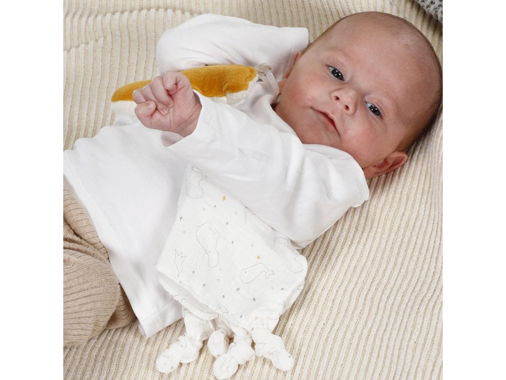 Malý plyšový medvěd poskytuje pohodlí, teplo, pocit bezpečí a rychle se stává nejlepším přítelem vašeho dítěte. S balónkem, ospalou hlavičkou a dvěma uzly, vybízí k pomazlení a děťátku se dobře drží. Roztomilý medvěd pomáhá usnout, a tak se rychle stává nejlepším přítelem.