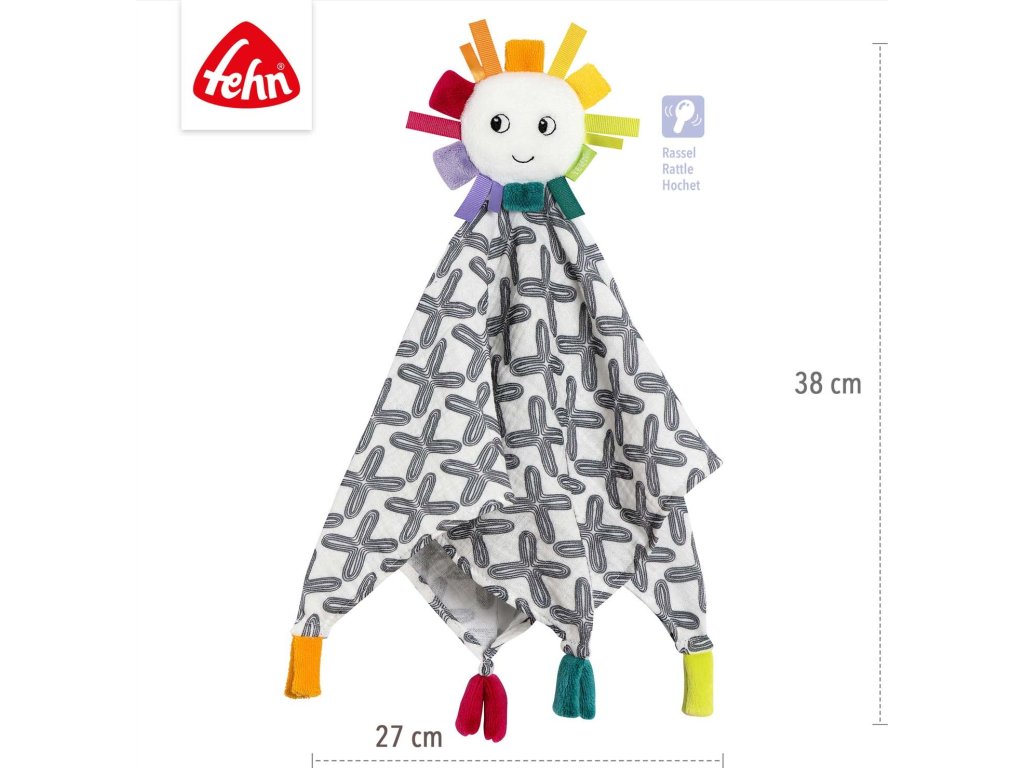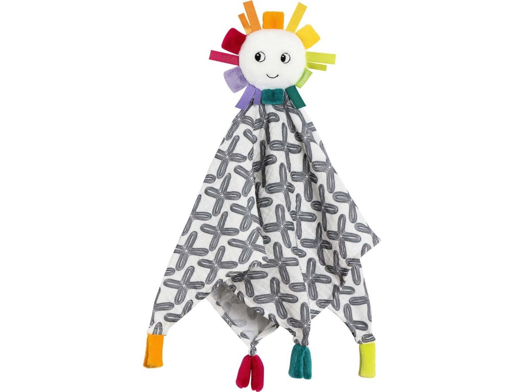 Roztomilý muchláček Sluníčko z kolekce DoBabyDoo Black & White je kombinací pomocníka s usínáním a mazlivého společníka. Milé sluníčko se rádo tulí a bude věrným kamarádem vašeho miminka doma i na cestách. Při usínání poskytuje mušelínová bavlněná látka pocit bezpečí. Měkké materiály a našité barevné paprsky sluníčka lákají k uchopení, zkoumání a mazlení, zatímco výrazné černobílé kontrasty podporují vývoj dítěte už od narození. Večer přináší pocit jistoty, a tak se sluníčko rychle stane součástí každého dobrodružství.