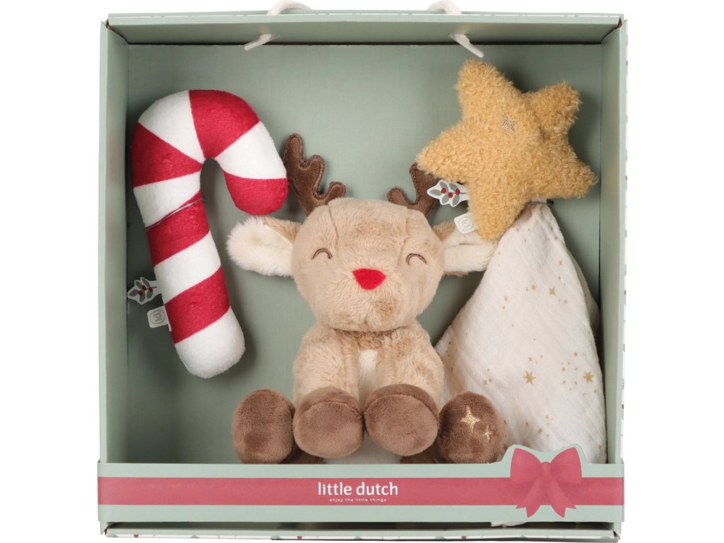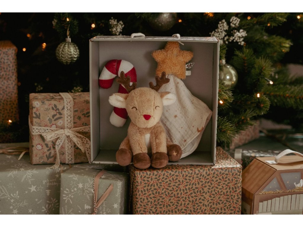 Speciální vánoční edice dárkové sady plyšových hraček obsahuje roztomilého plyšového soba, muchláčka s hvězdou a plyšovou cukrovou hůlku. Sada je vhodná jako vánoční dárek i jako dárek pro novorozené miminko.