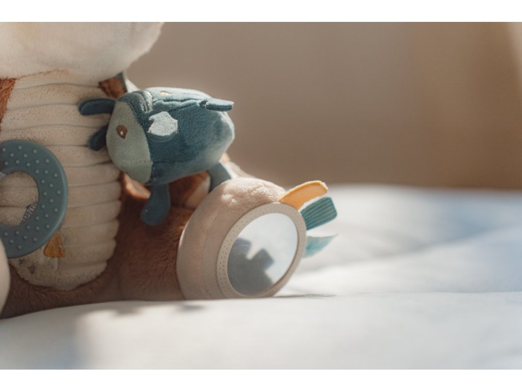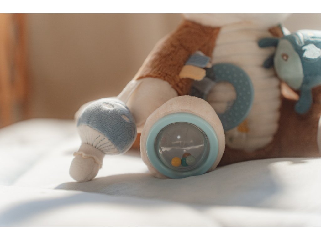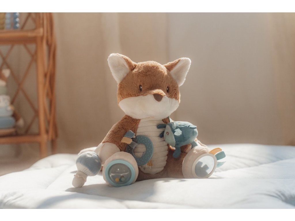 Plyšová hračka v podobě roztomilé lišky láká ke hraní a zkoumání. Liška je je vyrobena z velmi jemného a příjemného materiálu, při pohybu chrastí a nabízí různorodé aktivity ke zkoumání. Hračka dítě zabaví a může sloužit i jako kamarád do postýlky pro klidné usínání.