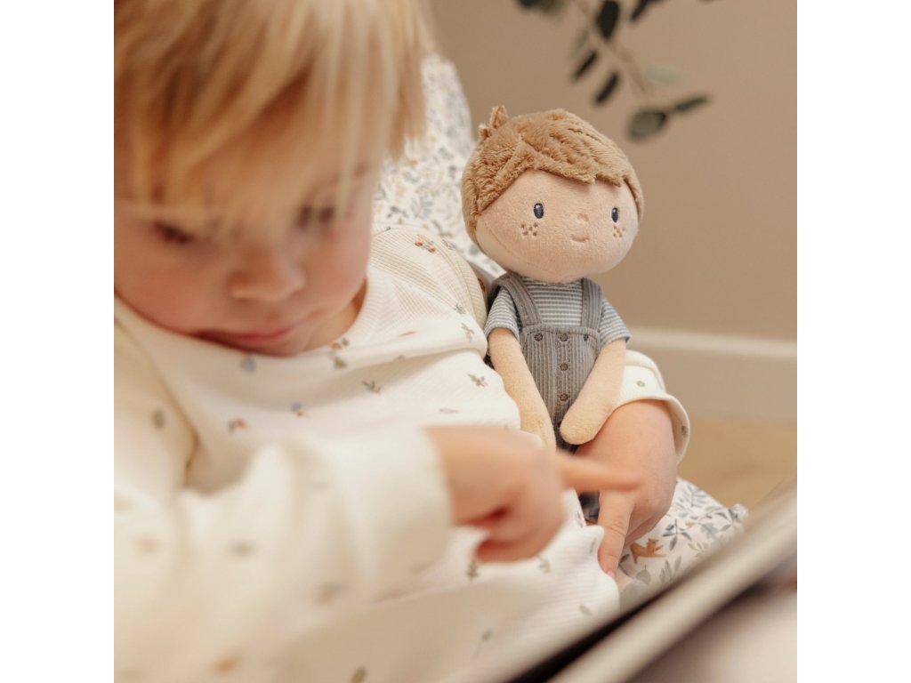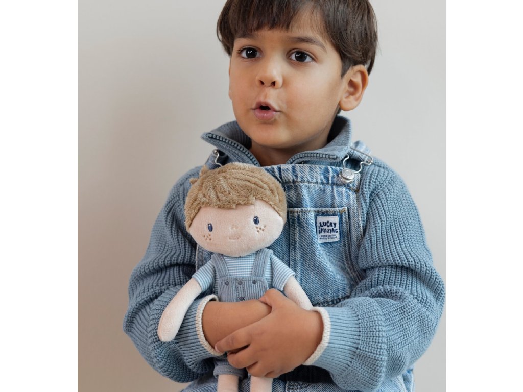 Originální plyšová panenka v podobě chlapečka Jima v manšestrových kalhotách s laclem. Panenka z měkkého jemného materiálu je ideální jako první panenka pro vaše dítě, je vhodná na hraní i mazlení a bude se s ní i krásně usínat!