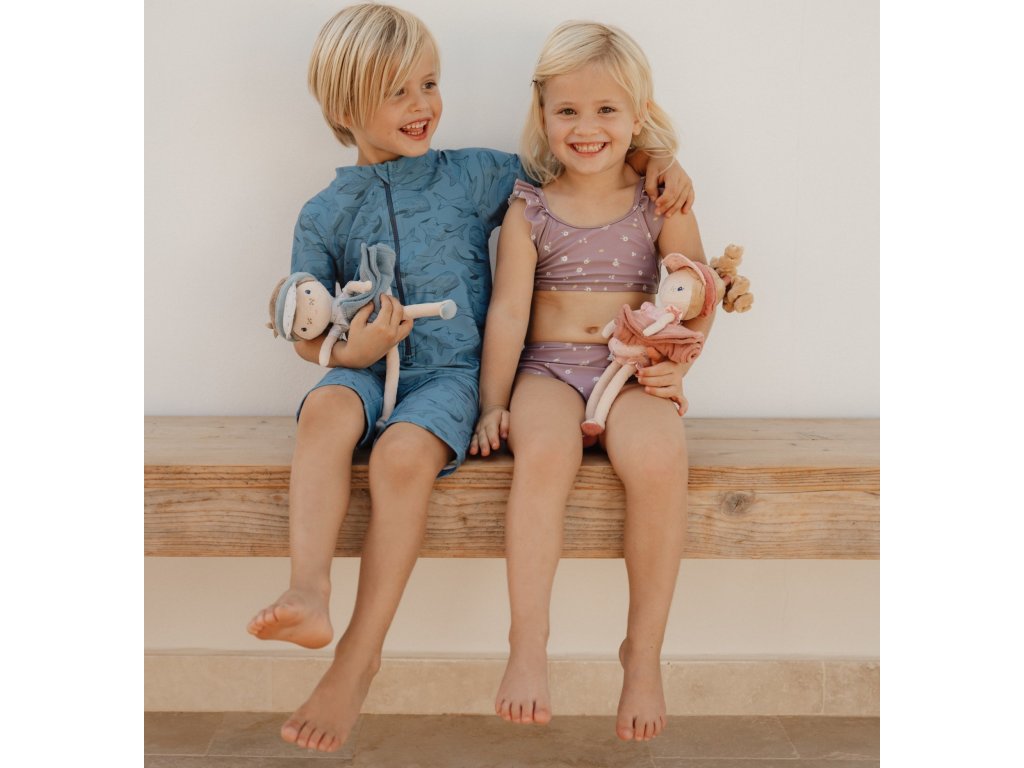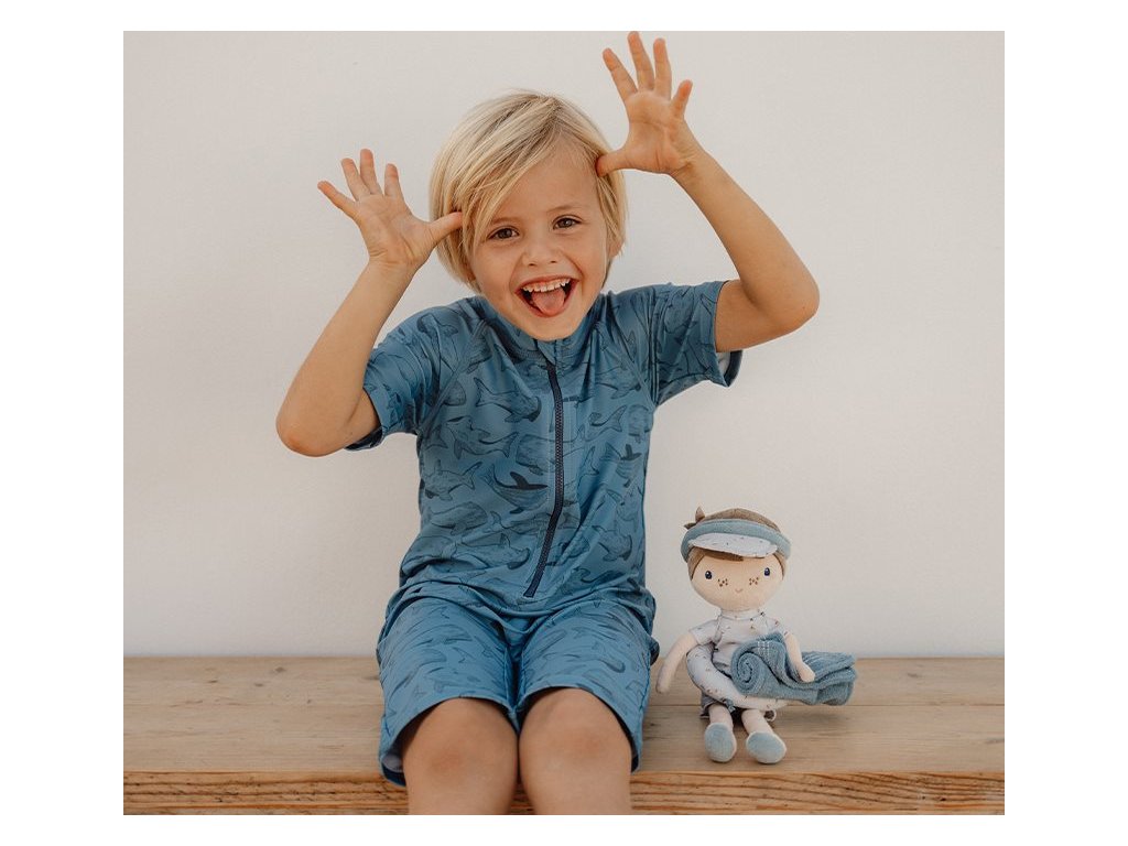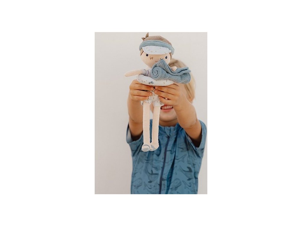 Roztomilá plyšová panenka Jim ve speciálním letním oblečení s plavacím kruhem a osuškou je připravena vyrazit s vaším dítětem na prázdniny či rodinnou dovolenou. Panenka z měkkého jemného materiálu je ideální jako první panenka pro vaše dítě, je vhodná na hraní i mazlení a bude se s ní i krásně usínat!