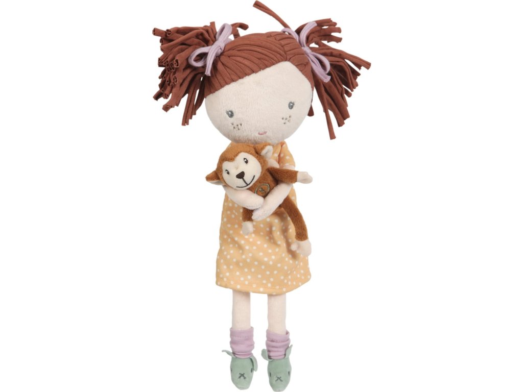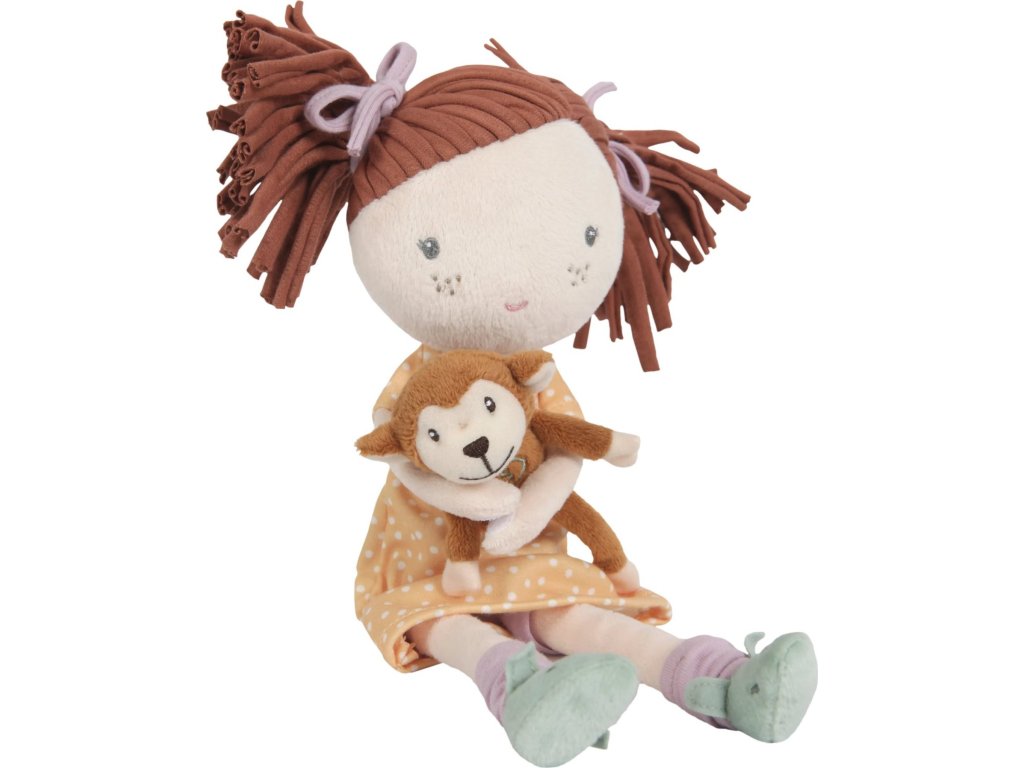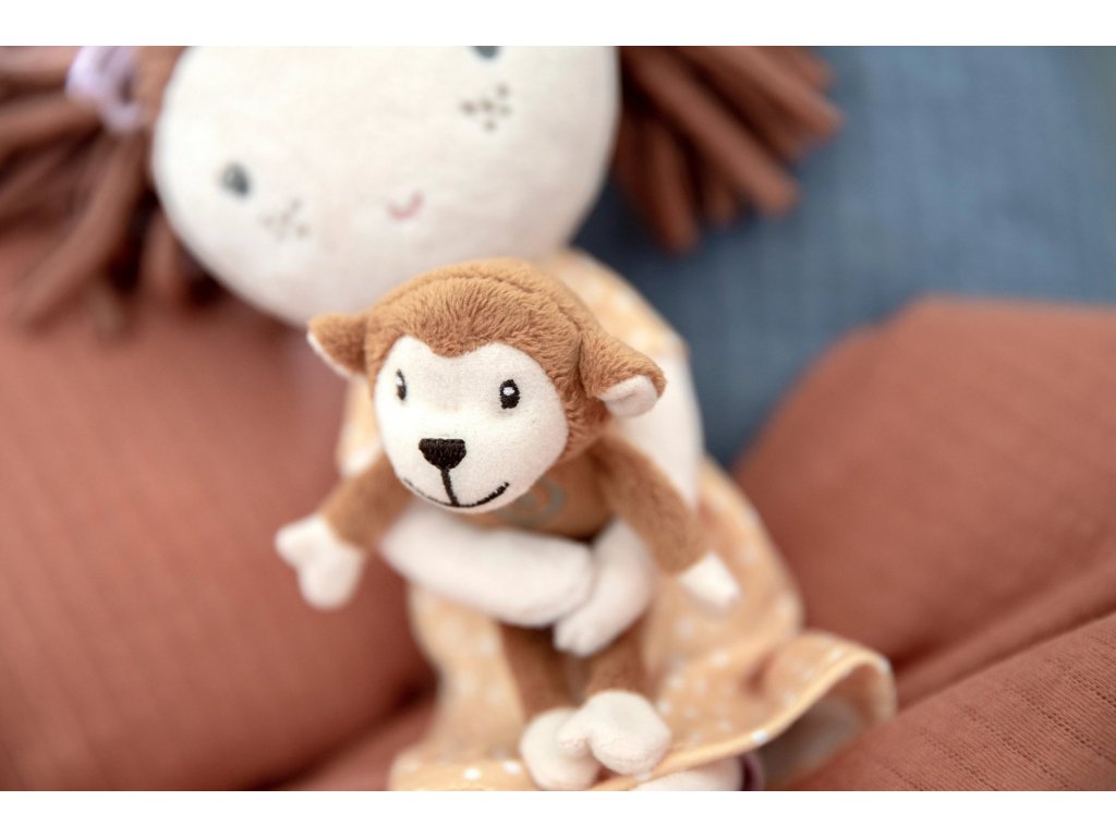 Něžná plyšová panenka Sophia z měkkého jemného materiálu je oblečená do krásných puntíkovaných šatiček. Panenka drží v ruce malou plyšovou opičku, připevněnou suchým zipem. Je vhodná na hraní i mazlení a bude se s ní i krásně usínat!