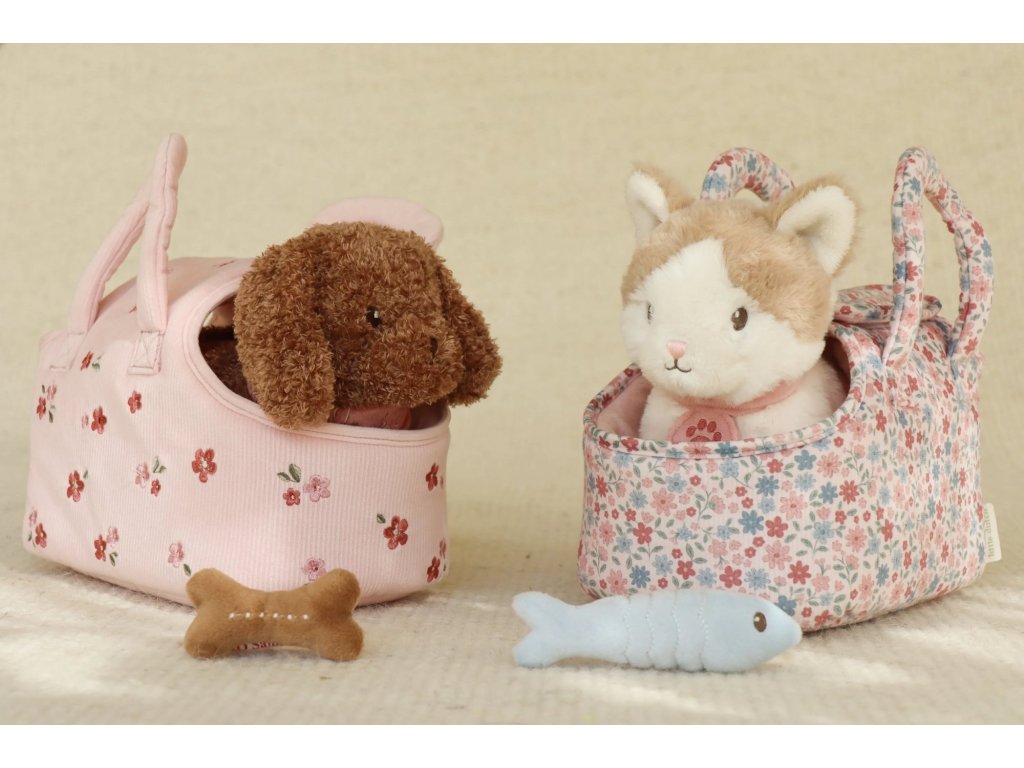 Pejsek přichází v elegantní květované tašce s předním otvorem, aby mohl zvědavě vykukovat ven. Díky tomu si ho děti mohou vzít kamkoli – na procházku, na výlet, do školky nebo třeba k prarodičům. Kolem krku má uvátaný šátek se svým jménem. Plyšová kost na hraní má uvnitř magnet, takže drží pejskovi u tlamičky.
