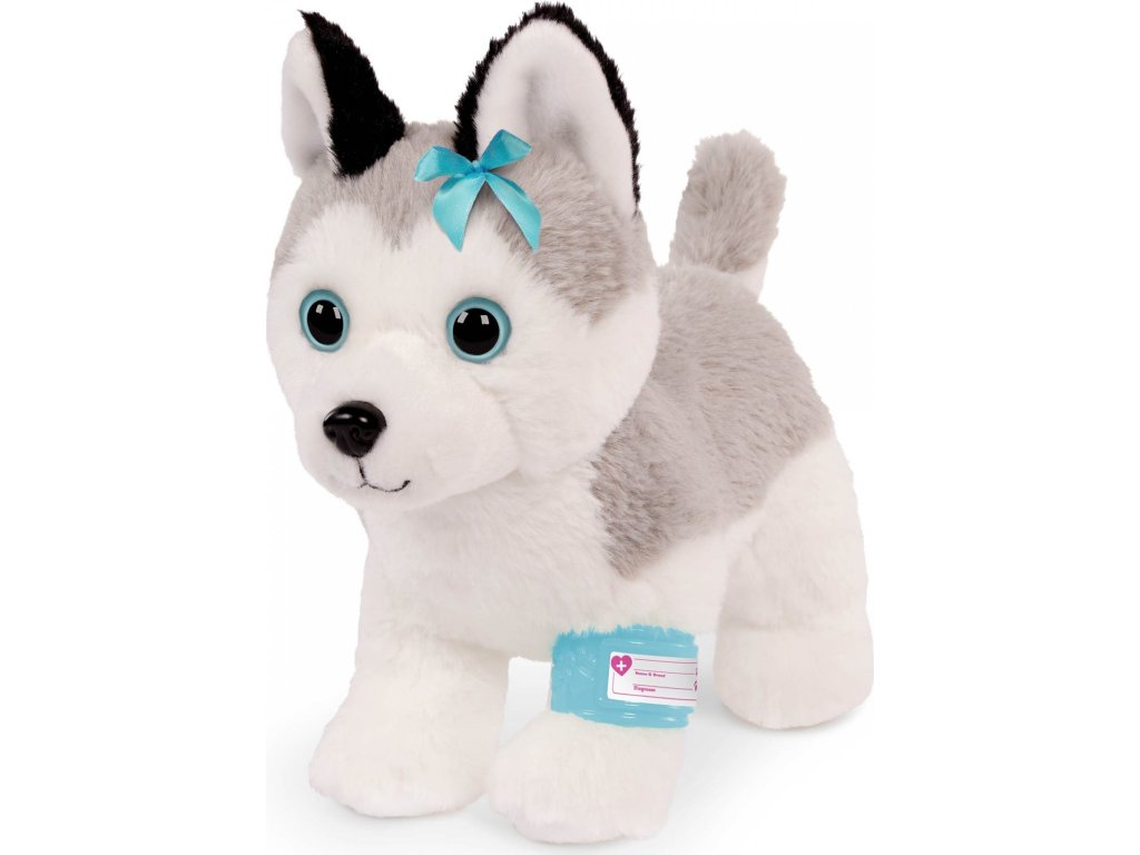 Roztomilé štěně huskyho v kabelce s krásným potiskem je vždy připravené na mazlení i na procházku. Díky kabelce si jej vaše dítě může vzít kamkoli. Kabelka má okénko v přední části, aby štěňátko při přenášení vidělo na svět. Uvnitř najdete i sadu veteriářských nástrojů a doplňků pro vyšetření i léčení štěňátka!