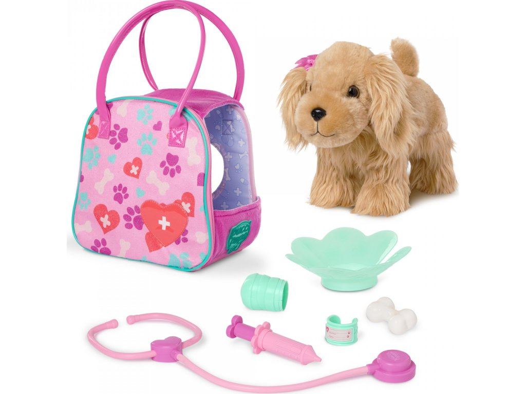 Obsah balení: kabelka, plyšové štěně, 6 veterinářských doplňků