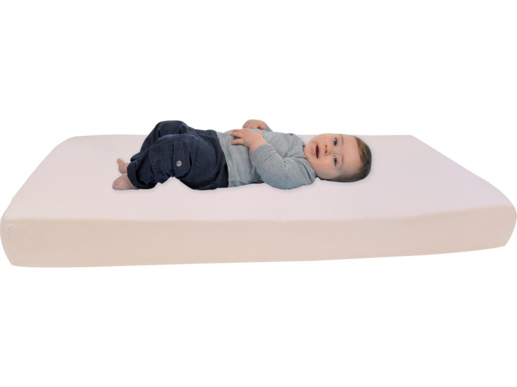 Prostěradlo do postýlky o rozměru 70 x 140 cm. Lem je zpevněn gumičkou, aby prostěradlo řádně přilnulo k matraci a nedocházelo k jeho posunutí.