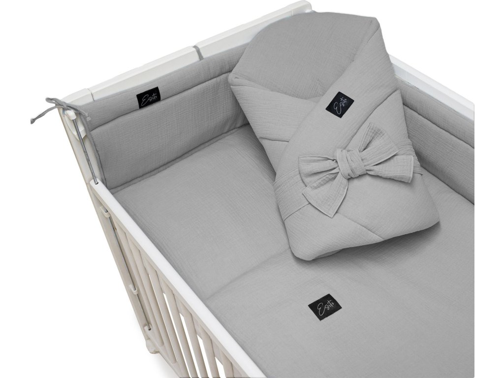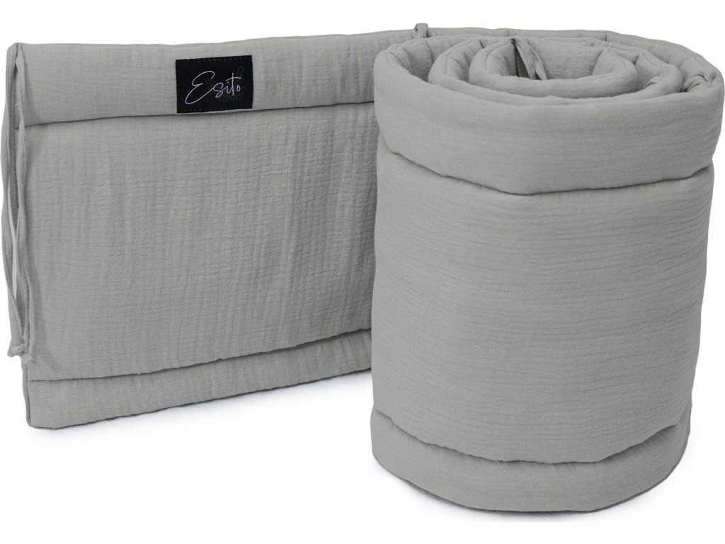 ESITO Luxusní mantinel mušelín do postýlky Dove grey - 28 x 180 cm