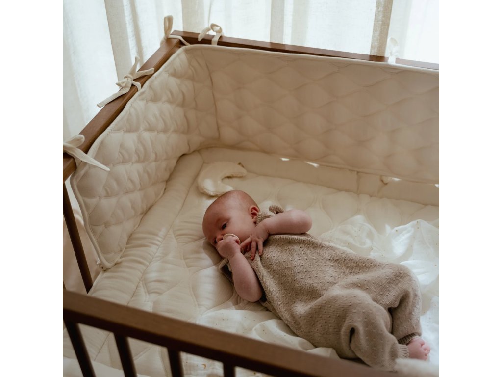 Zajistěte svému miminku pocit bezpečí i pohodlí s tímto měkkým mantinelem do postýlky v krásném provedení s ozdobným prošíváním. Chrání dítě před tvrdými bočnicemi postýlky a vytváří útulné, klidné prostředí pro spánek i hraní.