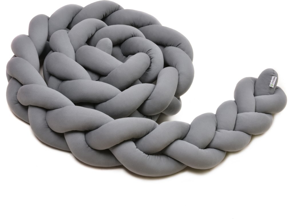 Pletený mantinel T-TOMI je moderním ochranným doplňkem zapleteným do copu o délce 360 cm a výšce 20 cm. Mantinel je vyrobený ze 100% bavlny, vyplněný antialergickým dutým vláknem. Pletenec T-TOMI lze ovinout kolem celé vnitřní strany postýlky a Vašemu děťátku tak poskytne ochranu, pohodlí a pocit bezpečí. Miminko se bude cítit v postýlce příjemněji než ve volném otevřeném prostoru, bude spokojenější a zajistíte mu klidnější usínání. Lze jej také využít jako ochrannou ohrádku pro hraní mimo postýlku či jako zábranu do první velké postele.