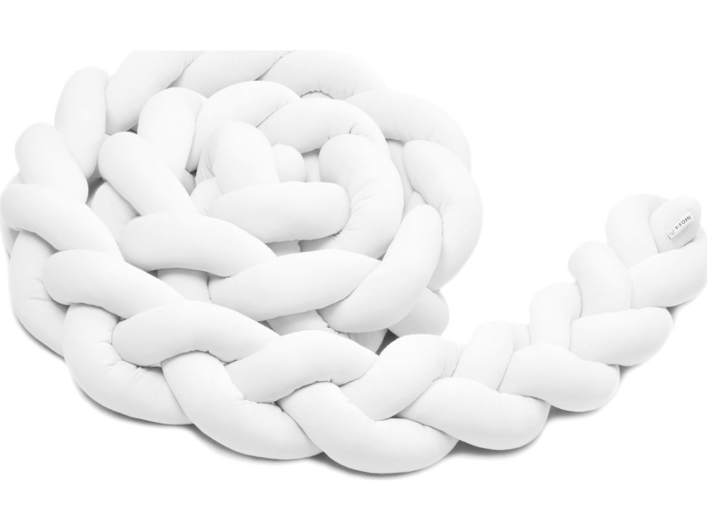 Pletený mantinel T-TOMI je moderním ochranným doplňkem zapleteným do copu o délce 360 cm a výšce 20 cm. Mantinel je vyrobený ze 100% bavlny, vyplněný antialergickým dutým vláknem. Pletenec T-TOMI lze ovinout kolem celé vnitřní strany postýlky a Vašemu děťátku tak poskytne ochranu, pohodlí a pocit bezpečí. Miminko se bude cítit v postýlce příjemněji než ve volném otevřeném prostoru, bude spokojenější a zajistíte mu klidnější usínání. Lze jej také využít jako ochrannou ohrádku pro hraní mimo postýlku či jako zábranu do první velké postele.