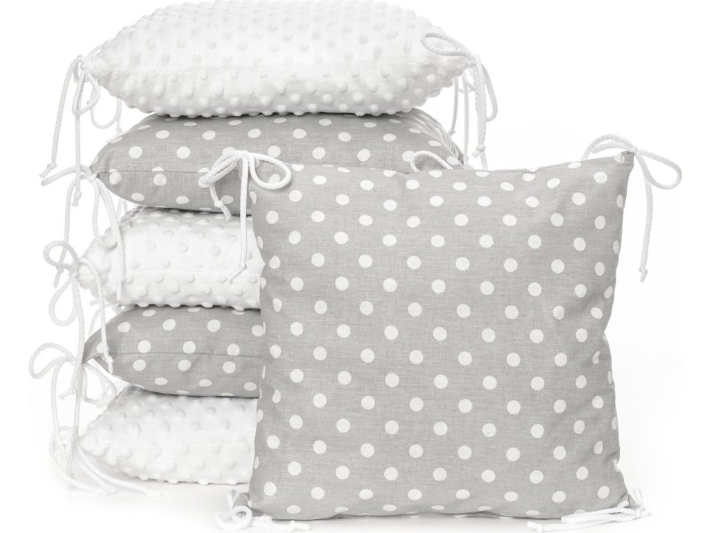 Polštářkový mantinel T-TOMI tvořený 6 kusy jednotlivých polštářků o velikosti 35 x 35 cm vyrobený ze 100% bavlny a z jemného, hřejivého a luxusního materiálu MINKY (3+3). Polštářky T-TOMI lze uvázat po boční straně postýlky a poskytnou tak Vašemu děťátku ochranu, pohodlí a bezpečí zároveň. Miminko se bude cítit v postýlce příjemněji než ve volném otevřeném prostoru, bude klidněji usínat.