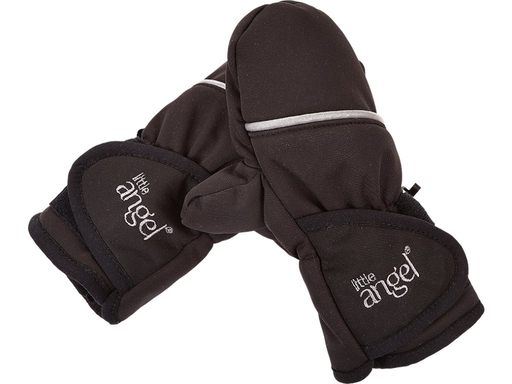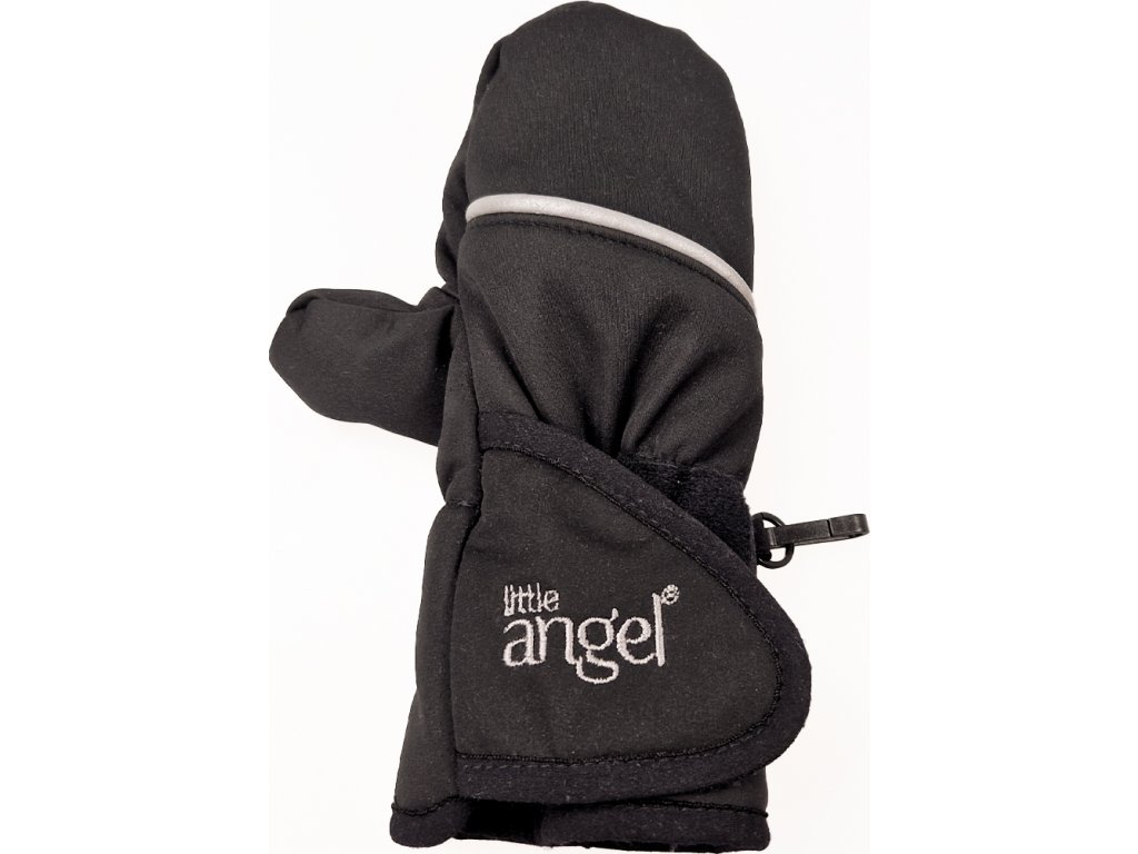 Little Angel rukavice s palcem softshell STRETCH Outlast® - černá-výšivka šedá