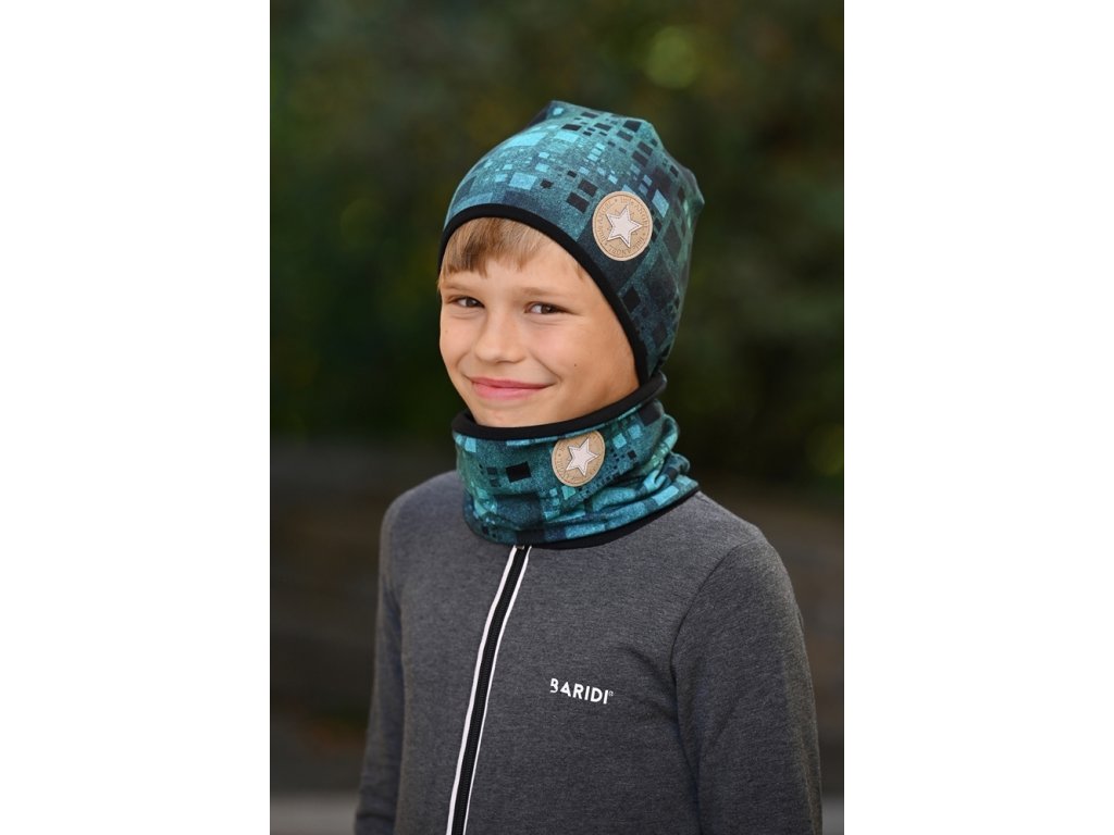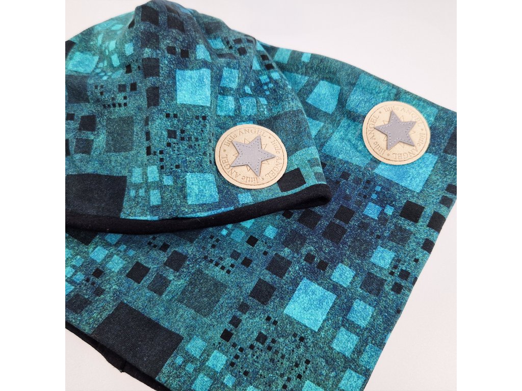 Little Angel nákrčník podšitý Outlast® - černotyrkysové čtverce/černá