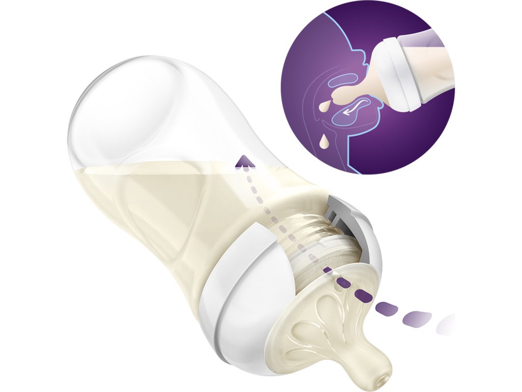 Antikolikový ventil je navržen tak, aby během krmení nevnikal do bříška dítěte vzduch a snížilo se tak riziko koliky a bolesti.