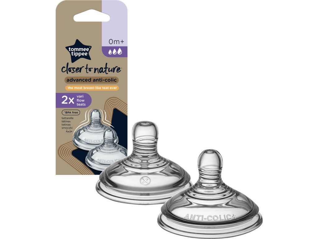 Všechny savičky lahví Closer to Nature jsou vybaveny antikolikovým ventilem, který zabraňuje příznakům koliky tím, že zajišťuje, aby dítě přijímalo více mléka a méně vzduchu. Nabízíme různé rychlosti průtoku, aby maminky udržely krok s rostoucím dítětem.