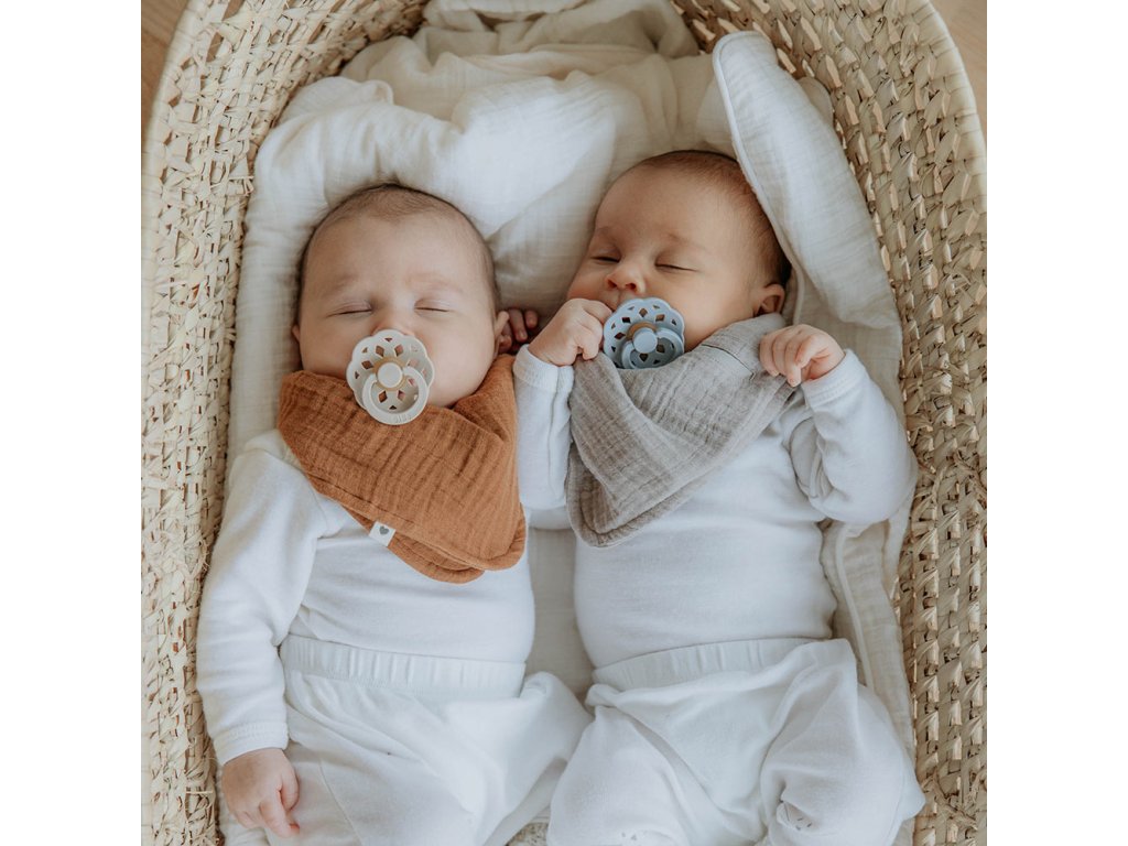 BIBS je obľúbená dánska značka s tradíciou výroby ikonických cumlíkov od roku 1978. Minimalistický škandinávsky dizajn, kvalita a široké farebné prevedenie sú pre BIBS cumlíky typické. Okrem jedinečného dizajnu dbá značka BIBS aj na to, aby boli cumlíky zdravotne nezávadné a napomáhali prirodzenému vývoju detí. Všetky BIBS produkty sú garanciou najvyššej kvality detského sortimentu. BIBS Boheme cumlíky charakterizuje esteticky prepracovaný dizajn v modernom bohémskom štýle. „Boho“ štýl čerpá inšpiráciu v prírode, spája prírodné prvky ako drevo, ratan, makramé,... s umeleckými svojráznymi a organickými vzormi. Cumlík ako žiadny iný... Sacia časť je vyrobená zo 100%25-ného prírodného kaučuku, ktorý je mimoriadne pružný a mäkký zároveň, odolný proti vytvoreniu trhlín a odštiepeniu malých kúskov. Ostatné časti (štít a karička) sú vyrobené zo zdravotne nezávadného polypropylénu (PP). Cumlík je navrhnutý tak, aby nedráždil citlivú pokožku bábätka. Ľahučký dierkovaný štít má klenutý tvar, takmer vôbec sa nedotýka pokožky okolo úst, tá preto zostáva kľudná, bez otlačkov a podráždení. Vďaka mäkučkému kaučuku a zabudovanému vzduchovému ventilu dieťa cumlík ľahko stláča a formuje v ústach, čím je zachovaný prirodzený vývin podnebia, zúbkov a ďasien detí. Prečo deti obľubujú cumlíky BIBS? Extra ľahučký. Výnimočná chuť prírodného kaučuku, ktorý deti prirodzene uprednostňujú. Guľatý / čerešnový tvar sacej časti si často obľúbia aj deti, ktoré odmietajú iné tvary cumlíka. Prečo rodičia obľubujú cumlíky BIBS? Dieťa saje len 100%25 prírodný bezpečný materiál – kaučuk vyrobený z miazgy stromu Hevea. Vďaka špeciálnemu klenutému tvaru štítu je minimalizovaný dotyk cumlíka s pokožkou a nevznikajú otlačky a podráždenia. Štýlový dizajn v mnohých farebných prevedeniach. Vyrobené v EU. Zloženie: Sacia časť: 100%25 prírodný kaučuk Ostatné časti: polypropylén (PP) Bez BPA, PVC, ftalátov a iných škodlivých látok. Vyrobené v Dánsku. Testované v Consumer Lab Denmark. V súlade s európskym štandardom EN 1400+A2. Veľkosti: BIBS Boheme je k dispozícii v 2 veľkostiach. Veľkosť 1: 0-6 mesiacov Veľkosť 2: 6+ mesiacov