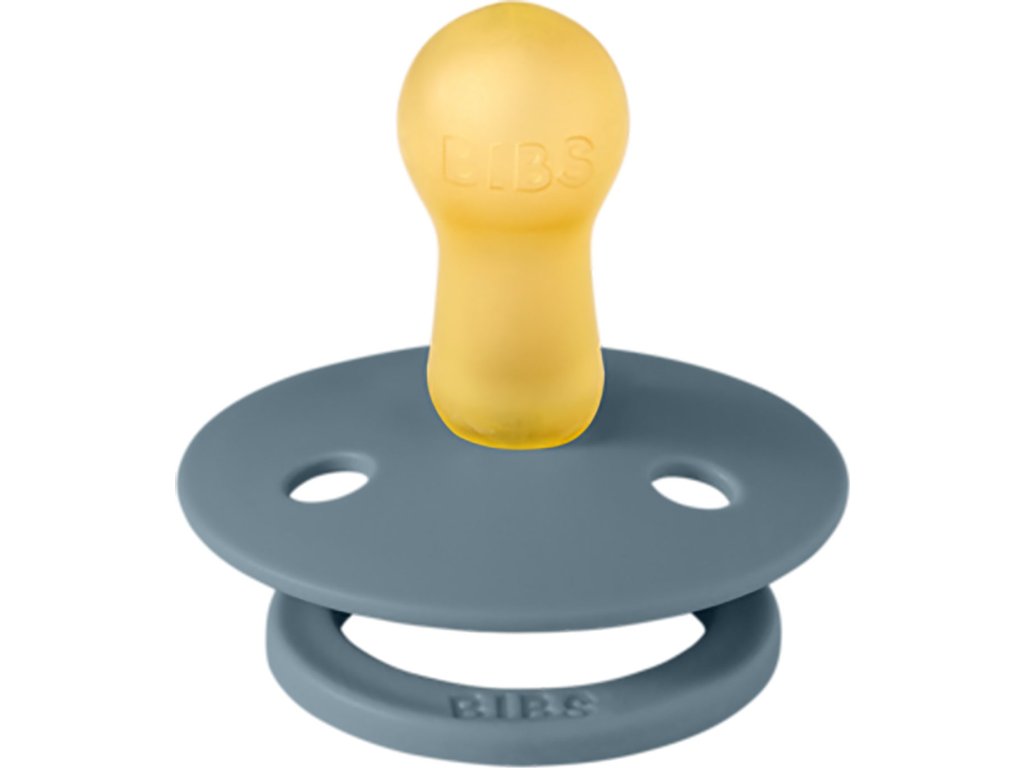 BIBS dobývajú celý svet. Jednoduché a štýlové. Ikonické cumlíky navrhnuté a vyrábané v Dánsku už od roku 1978. Ich minimalistický škandinávsky dizajn a široký farebný výber sú pre BIBS cumlíky typické. Všetky BIBS produkty sú garanciou najvyššej kvality detského sortimentu. Sacia časť je vyrobená zo 100%-ného prírodného kaučuku, ktorý je mimoriadne pružný a mäkký zároveň, odolný voči vytvoreniu trhlín a odštiepeniu malých kúskov. Cumlík je navrhnutý tak, aby nedráždil citlivú pokožku bábätka. Okrúhly krúžok s vetracími otvormi má klenutý tvar, takmer vôbec sa nedotýka pokožky okolo úst, tá preto zostáva kľudná, bez otlačkov a podráždení. Vďaka mäkučkému kaučuku a zabudovanému vzduchovému ventilu dieťa cumlík ľahko stláča a formuje v ústach, čím je zachovaný prirodzený vývin podnebia, ďasien a zúbkov detí. Prečo deti aj rodičia obľubujú cumlíky BIBS Colour? Extra ľahučký. Vďaka špeciálnemu klenutému tvaru krúžku je minimalizovaný dotyk cumlíka s pokožkou a nevznikajú otlačky a podráždenia. Guľatý / čerešničkový tvar sacej časti si často obľúbia aj deti, ktoré odmietajú iné tvary cumlíka. Dieťa saje len 100% prírodný bezpečný materiál – kaučuk vyrobený z miazgy stromu Hevea. Výnimočná chuť prírodného kaučuku, deti ho prirodzene uprednostňujú pred syntetickými materiálmi. Štýlový dizajn v mnohých farebných prevedeniach. Vyrobené v EU. Zloženie: Sacia časť: 100% prírodný kaučuk Ostatné časti: polypropylén (PP) potravinárskej kvality. Bez BPA, PVC, ftalátov a iných škodlivých látok. Vyrobené v Dánsku. Testované v Consumer Lab Denmark. V súlade s európskym štandardom EN 1400+A2. Veľkosti: BIBS Colour cumlíky sú k dispozícii v 3 veľkostiach. Veľkosť 1: 0-6 mesiacov Veľkosť 2: 6-18 mesiacov Veľkosť 3: od 18 mesiacov