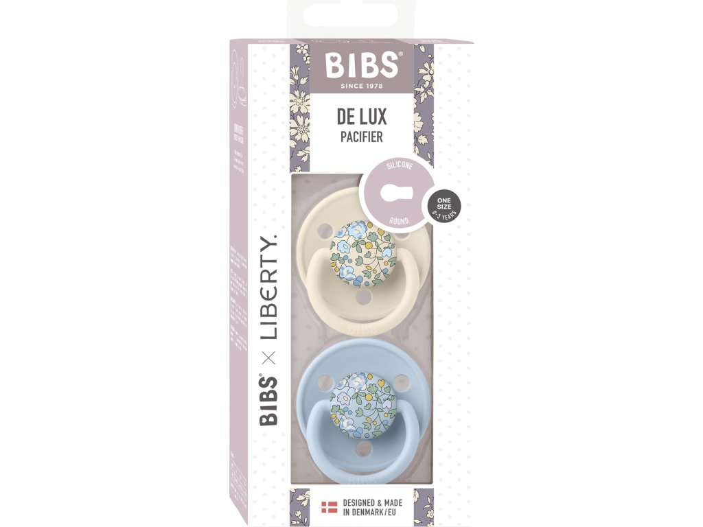 BIBS x LIBERTY je exkluzívna kolekcia najobľúbenejších BIBS produktov s potlačou Liberty. Liberty inšpiruje svet svojou výstrednosťou, nadčasovou eleganciou a prepožičiava svoje originálne vzory luxusným módnym značkám už od roku 1875. V kolekcii BIBS x LIBERTY sme spojili svoje sily, aby sme Vám priniesli produkty, ktoré oslavujú dedičstvo oboch značiek. BIBS dobývajú celý svet. Jednoduché a štýlové. BIBS De Lux je klasický guľatý cumlík s minimalistickým vzhľadom a moderným matným povrchom v krásnej farebnej ponuke jemných, pastelových, zemitých aj neutrálnych tónov, teraz aj s potlačou Liberty. Cumlík je navrhnutý tak, aby nedráždil citlivú pokožku bábätka. Okrúhly krúžok s vetracími otvormi má klenutý tvar, takmer vôbec sa nedotýka pokožky okolo úst, tá preto zostáva kľudná, bez otlačkov a podráždení. Vďaka zabudovanému vzduchovému ventilu dieťa cumlík ľahko stláča a formuje v ústach, čím je zachovaný prirodzený vývin podnebia, ďasien a zúbkov detí. Zloženie: Sacia časť: 100%25 silikón najvyššej kvality Ostatné časti: polypropylén (PP) Bez BPA, PVC, ftalátov a iných škodlivých látok. Vyrobené v Dánsku. V súlade s európskym štandardom EN 1400+A2. Veľkosti: BIBS x LIBERTY De Lux silikónové cumlíky sú k dispozícii v jednej univerzálnej veľkosti 0-3 roky.