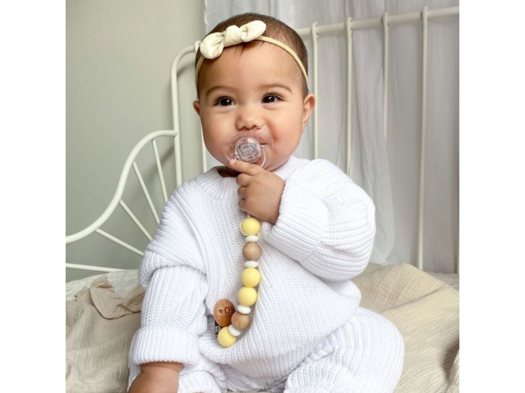 Nenechávejte u dětí bez dozoru nebo během spánku. Jedná se o držák/řetízek na dudlík, který není určený k použití jako hračka nebo kousátko. Po 3 - 6 měsících používání výrobek vyhoďte.