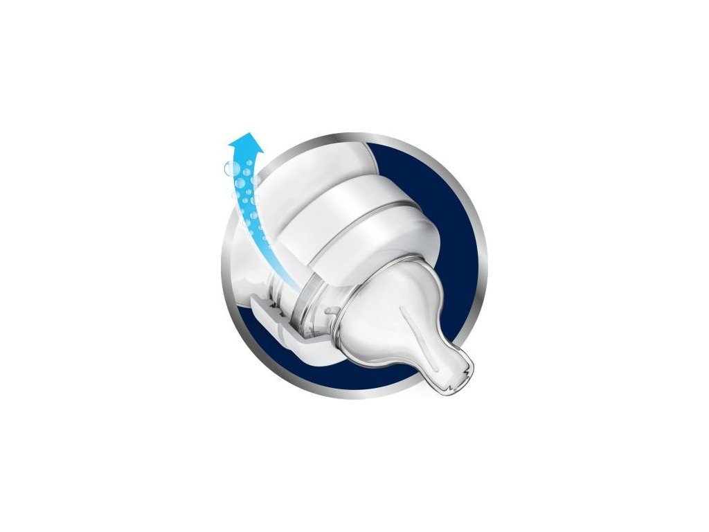 Silikonový dudlík AVENT je navržen tak, aby svým tvarem a funkcí co nejvíce připomínal maminčin prs. Má speciální patentovaný okraj, který funguje jako jednosměrný ventil. Dudlík umožňuje proudění vzduchu do lahvičky během krmení, čímž zamezuje vzniku vakua v lahvičce. Dítě se nemusí dudlíku při krmení pouštět a může pít souvisle jako při kojení bez polykání vzduchu. Právě polykaný vzduch během krmení vyvolává pláč způsobený bolestivou kolikou nebo nadýmáním.