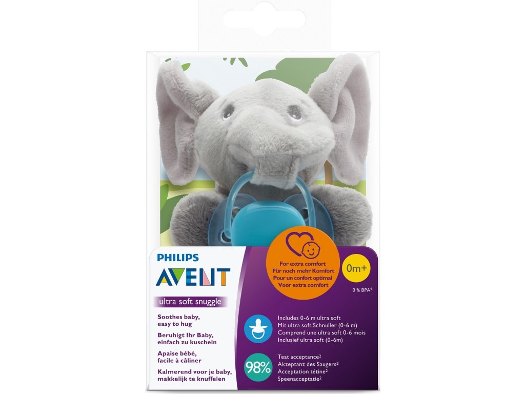 Philips AVENT Hračka plyšová se šidítkem Ultrasoft 0m+, slon