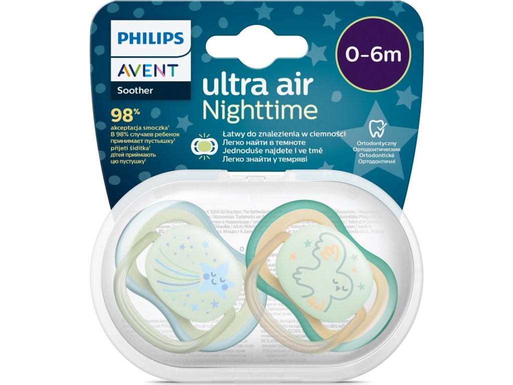 PHILIPS AVENT Philips AVENT Šidítko Ultra air noční 0-6m chlapec, 2ks
