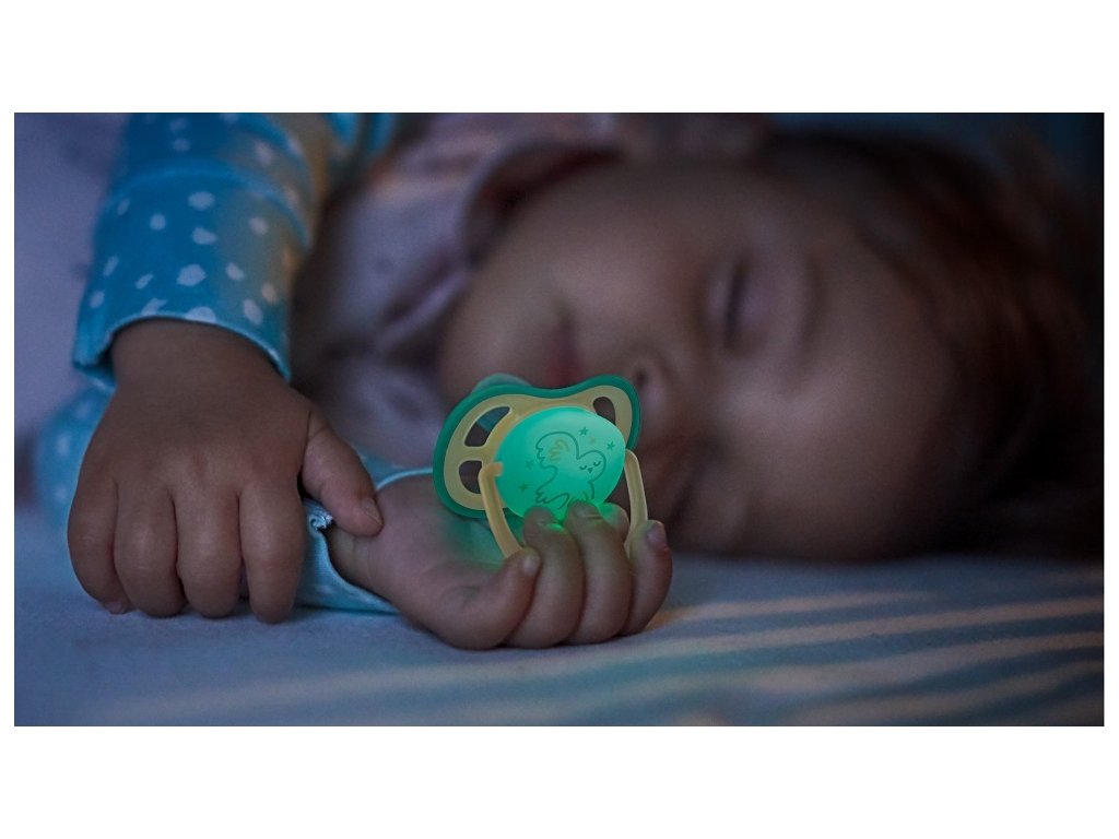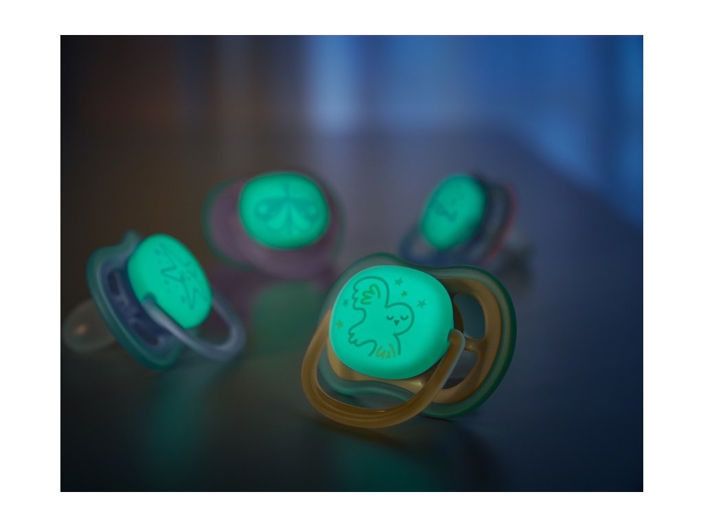 Střed šidítka Ultra Air světélkuje, takže jej snadno najdete i po tmě.