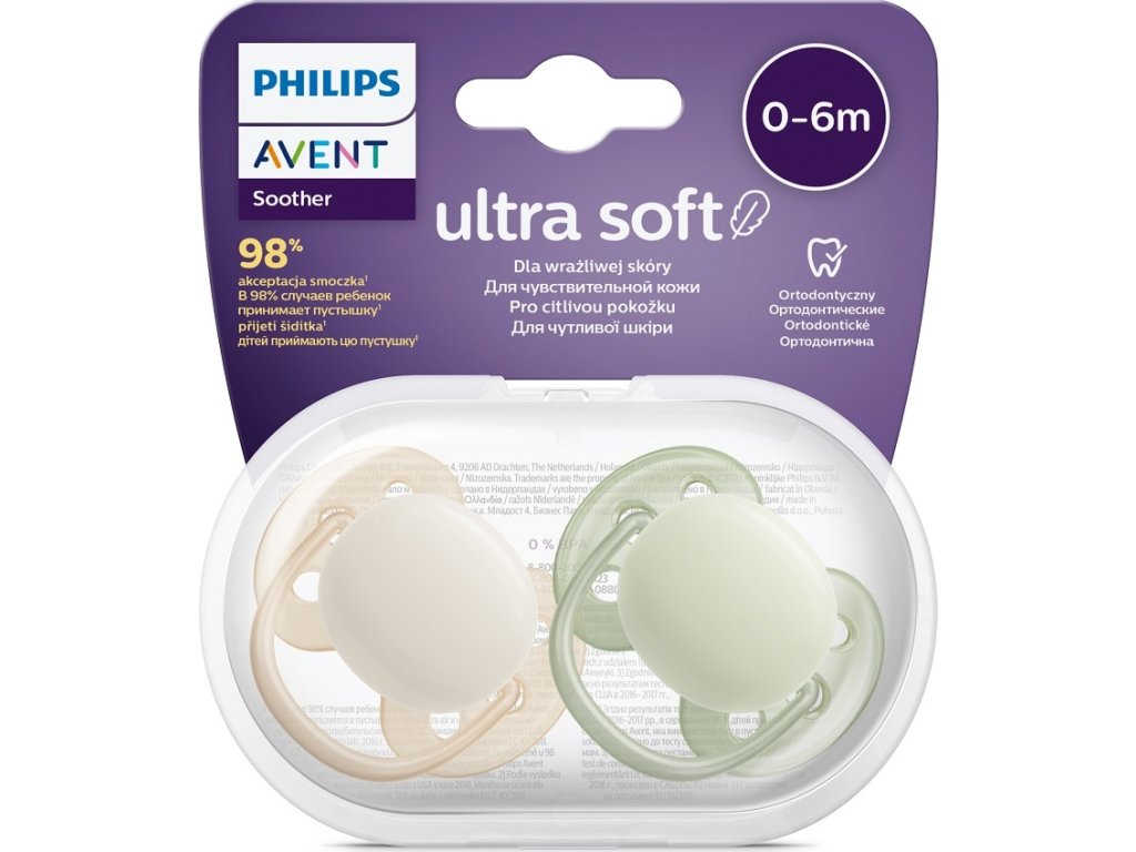 PHILIPS AVENT Philips AVENT Šidítko Ultrasoft Premium neutral 0-6m chlapec, 2 ks