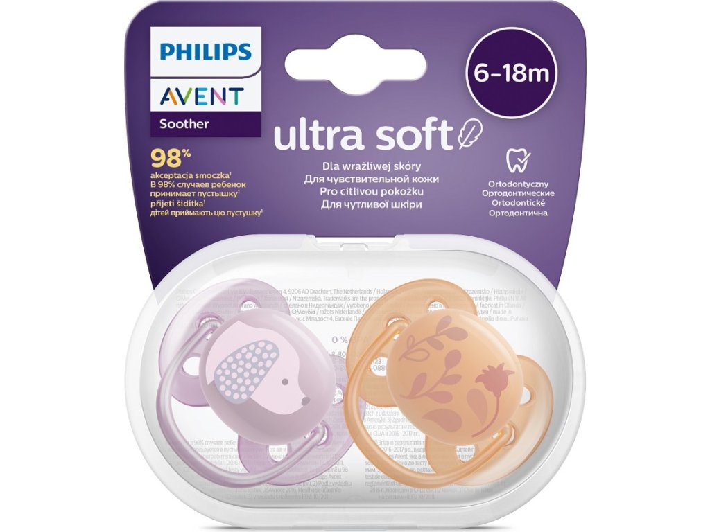 Pečujte o citlivou pokožku s šidítkem Philips Avent Ultrasoft. Náš mimořádně měkký* a pružný kotouč kopíruje křivky tváře dítěte, zanechává méně otlaků a menší podráždění pokožky.