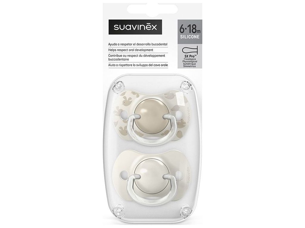 SUAVINEX | Dudlík SX PRO fyziologický BIRDIES 6/18m 2 ks - krémový