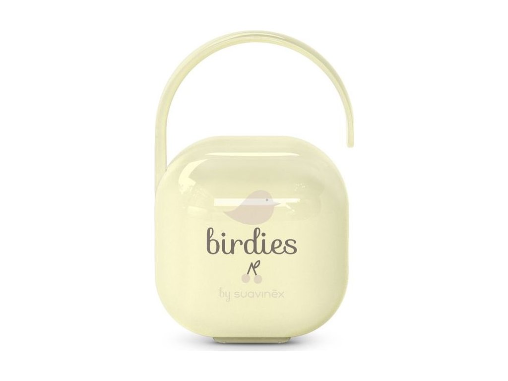 Krabička na jedno šidítko značky Suavinex kolekce BIRDIES s veselým potiskem dudlík dokonale chrání při jeho přepravě, aby se neztratil ani neušpinil.