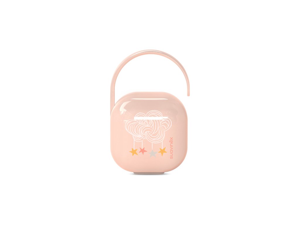 Krabička na jedno šidítko značky Suavinex kolekce DREAMS s veselým potiskem dudlík dokonale chrání při jeho přepravě, aby se neztratil ani neušpinil.