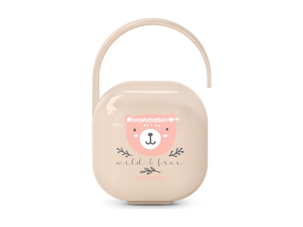 Krabička na jedno šidítko značky Suavinex kolekce WILD & FREE s veselým potiskem dudlík dokonale chrání při jeho přepravě, aby se neztratil ani neušpinil.