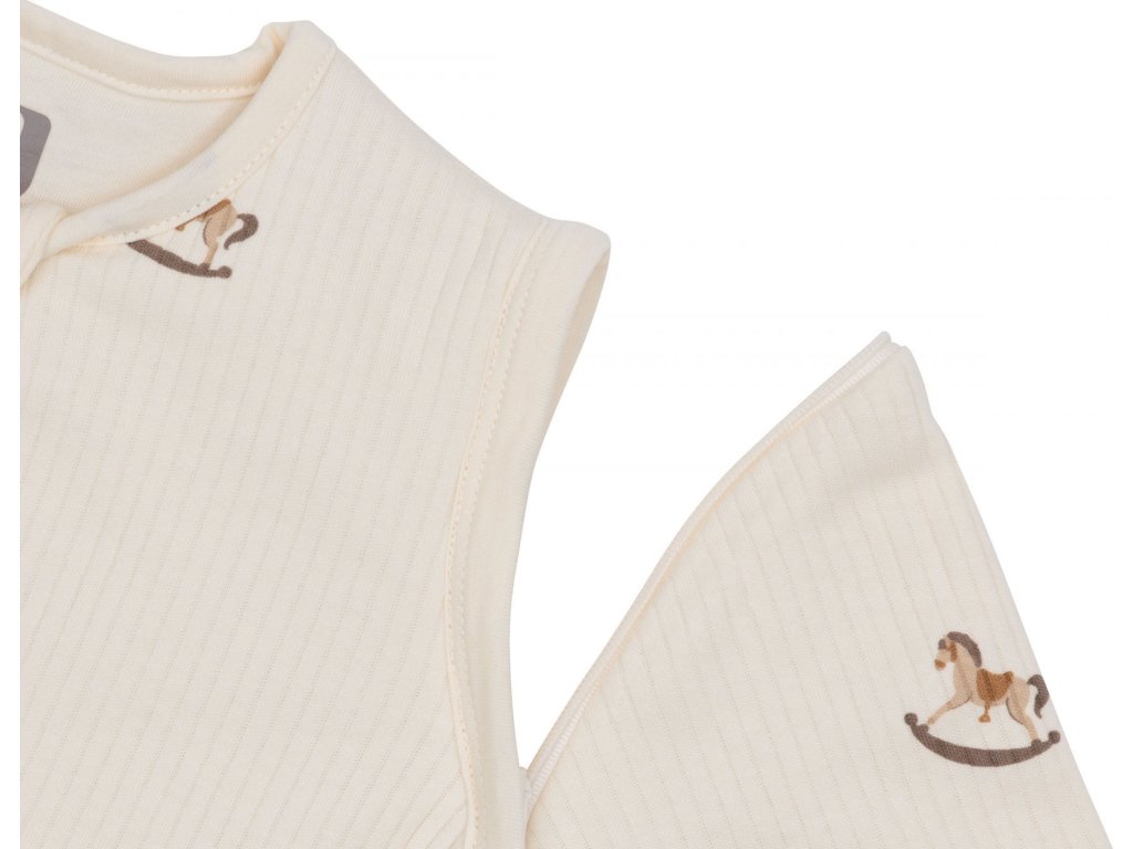 Praktický spací pytel s oddělitelnými rukávy nabízí variabilitu při použití dle počasí a teploty v místnosti. Díky jemné výplni je vhodný pro použití místo peřinky. Spací pytel zajistí, že se dítě v noci neodkope a bude tak po celou dobu spánku v pohodlí a teple bez rizika prochladnutí. Kryté zipy v průramcích umožňují snadné oddělení rukávů, pokud chcete spací pytel používat v teplejším prostředí bez rukávů. Zip na přední straně umožňuje snadné vložení dítěte do spacího pytle i přebalování během spaní.