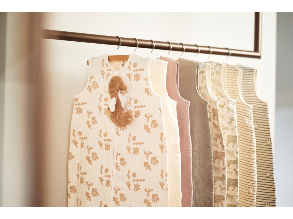 Lehký spací pytel z jemné 100% bavlny má zip na přední straně pro snadné vložení dítěte do spacího pytle i přebalování během spaní.