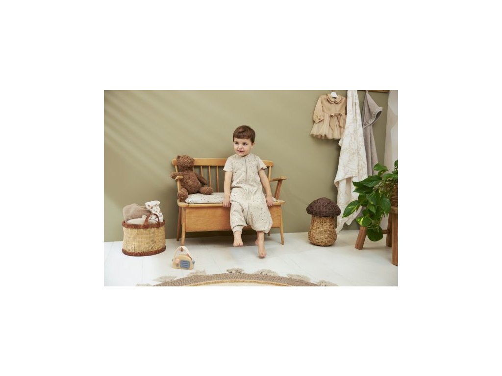 Pohodlný a prodyšný spací vak s otvory pro nožičky.Dobře větrá a působí příjemně a vzdušně, takže ideální na léto.