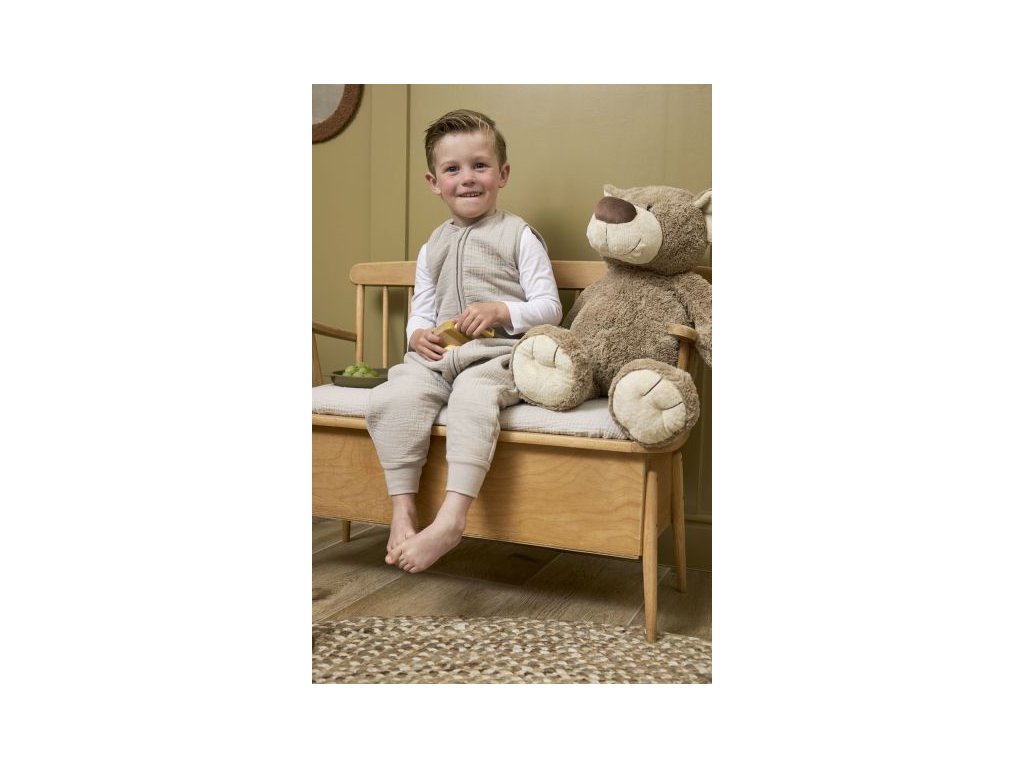 Pohodlný a prodyšný spací vak díky mušelínové tkanině s otvory pro nožičky. Vyroben z předeprané hydrofilní látky je vyroben ze 100% měkké bavlny a má výplň ze 100% polyesteru. Díky tomu je skvělý na jaro a podzim a na chladnější zimní dny a noci. Hydrofilní bavlna velmi dobře dýchá, výborně absorbuje vlhkost a velmi rychle schne. To udržuje prostředí pro spánek vašeho děťátka v dokonalé teplotě.