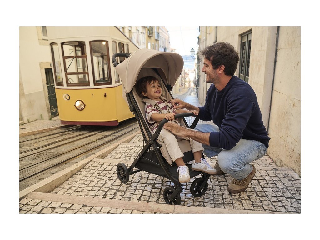 Velké a plně sklopné sedadlo zajišťuje maximální pohodlí pro vaše dítě a umožňuje mu pohodlný odpočinek při každé procházce. Prodlužovací stříška, s ochranou proti slunci UPF 50+, účinnou chrání před UV zářením, Zvětšená a odpružená kolečka tlumí nárazy, zajistí hladkou jízdu i na nerovném terénu.