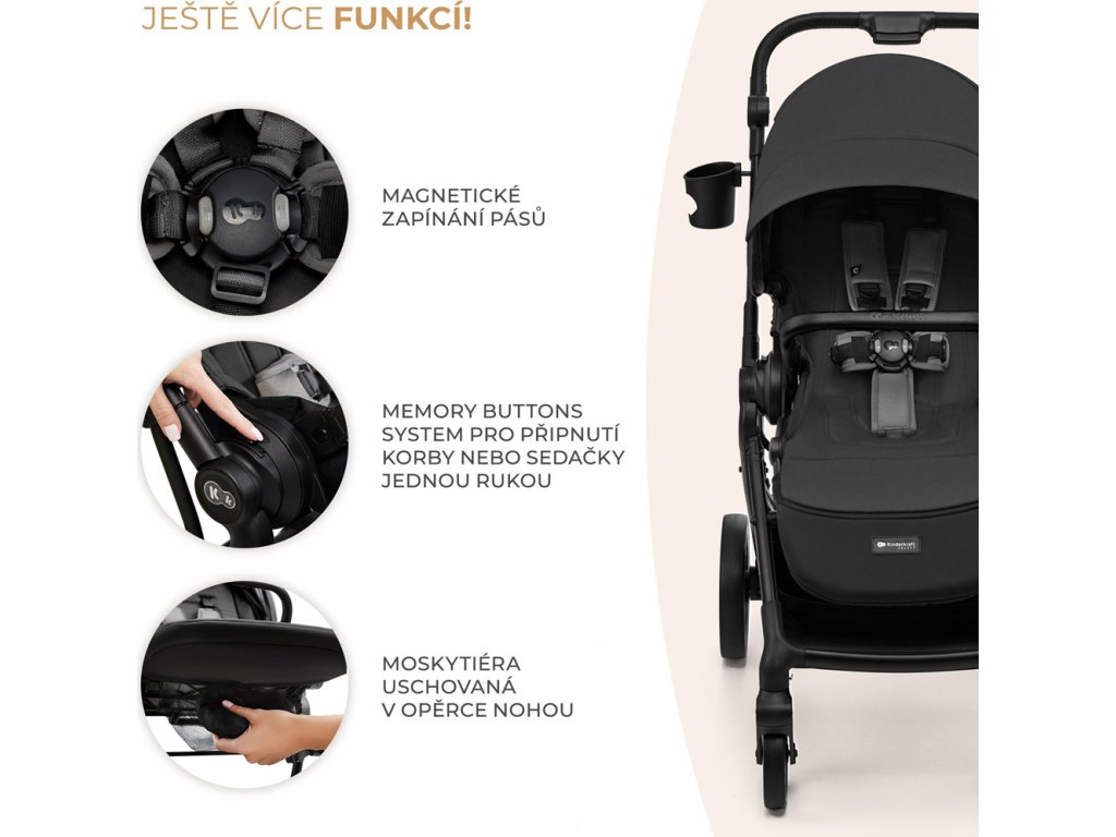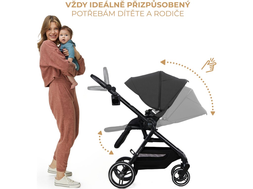 Sedačku kočárku lze připevnit po i proti směru jízdy – díky tomu vaše dítě může sledovat svět nebo se soustředit na vás, pokud ještě není připraveno na cestování po směru jízdy. Kočárek lze složit společně s připnutou sedačkou, což výrazně usnadňuje cestování.
