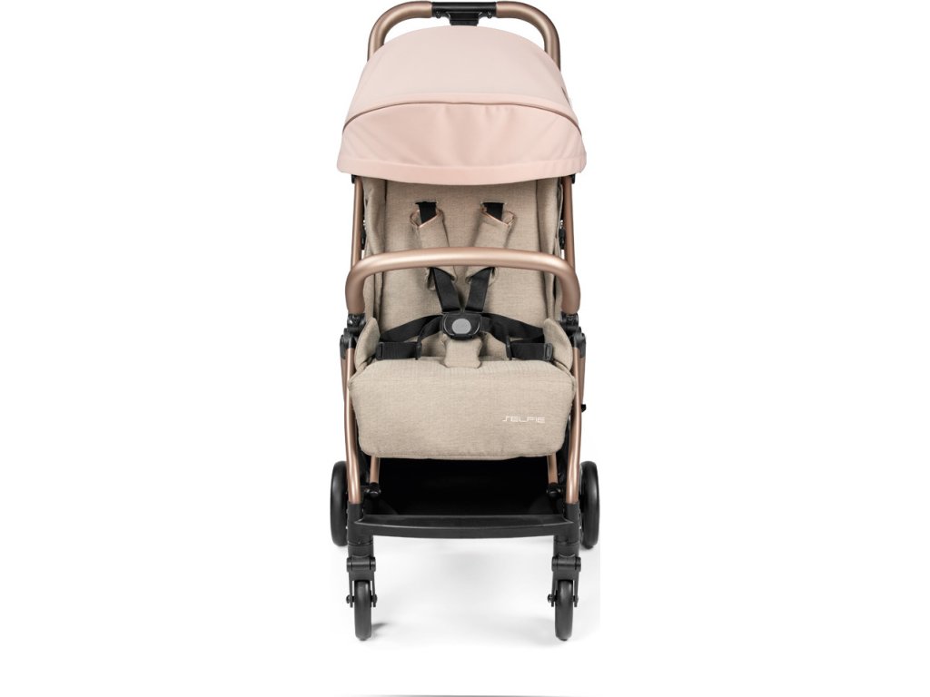 Selfie je lehký a kompaktní kočárek, vhodný pro děti od narození až do 22 kg, který se pyšní moderním vzhledem a funkcemi do města. Tento kočárek nenechává nic náhodě. Již od prvního dne po narození vašeho dítěte vám poskytuje více svobody a to prostřednictvím funkce automatického skládání a možností snadného rozkládání a tlačení pouze jednou rukou. Díky své nízké hmotnosti a snadnému ovládání i na těch nehrbolatějších cestách vám Selfie ulehčí a zpříjemní každou vyjížďku.O spolehlivou jízdu v terénu se starají kola s kuličkovými ložisky, otočná kola a odpružení.