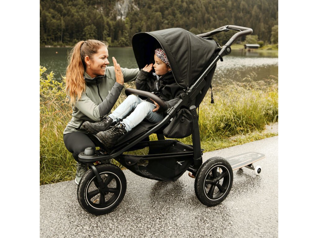 Ergonomická XXL sportovní sedačka kočárku mono2 s prodyšným materiálem nabízí maximální pohodlí i na delší vzdálenosti. S plynule nastavitelnou opěrkou zad a polohovatelnou opěrkou nohou vytvoříte enormní plochu lůžka. Stříška lze prodloužit a nabízí optimální ochranu, i když je slunce nízko na obloze.