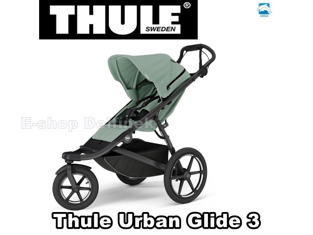 Zádová opěrka u Thule Urban Glide 3 jde napolohovat téměř do úplného sedu. Došlo k opětovnému zlepšení uložení předního ložiska a úpravě krytu tak, aby lépe odolával škrábancům. Velmi důležitou změnou je také polohování nožiček. Thule Urban Glide 3 disponuje delší stříškou, která je k sedáku uchycena zipem, tudíž již nedochází k mezerám mezi stříškou a konstrukcí. Další výrazná změna proběhla u parkovací brzdy, ta se již nenachází uprostřed, ale u pravého kola. Košík pod kočárkem je po stranách na zip a jeho nosnost je 7 kg. Pro menší osoby je přidána poloha rodičovského madla v nižší úrovni. Kočárek je nabízen ve třech barvách v kombinaci s černou konstrukcí.