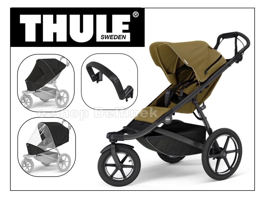 Thule Urban Glide 3 + Thule madlo + Thule pláštěnka + Thule moskytiera na kočárek Thule Urban Glide 3.