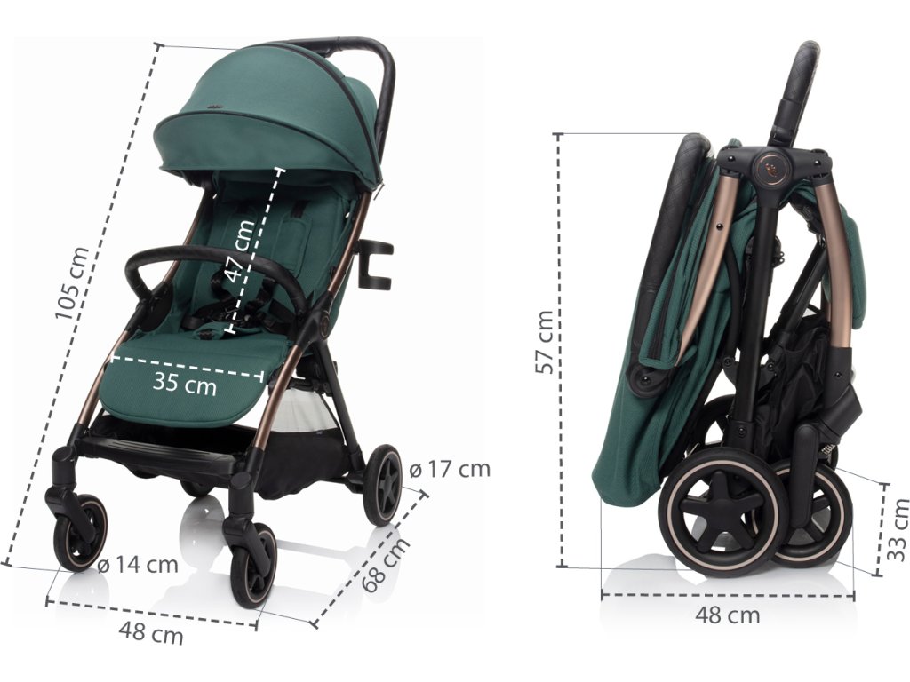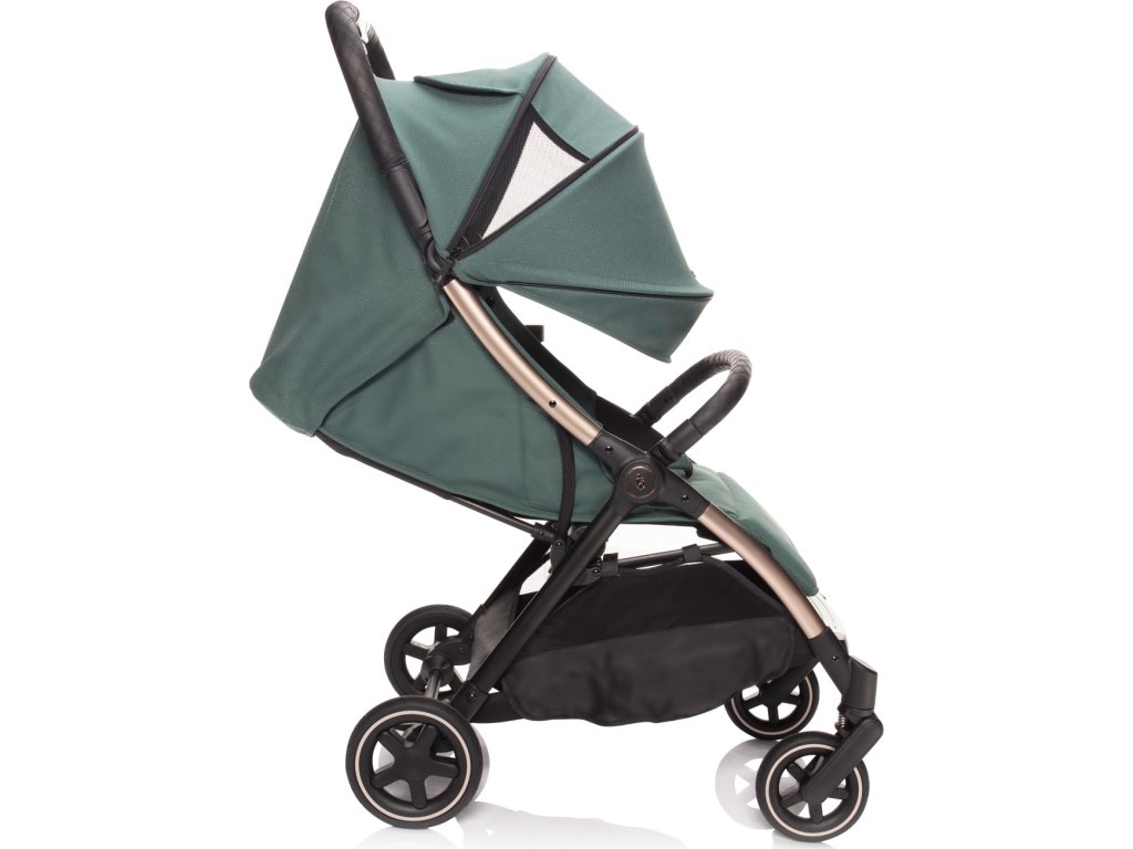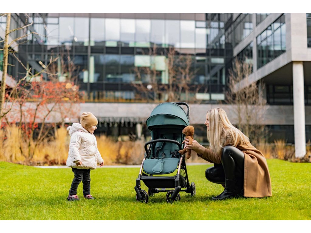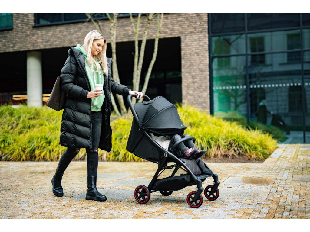 Měkké sportovní sezení je vybaveno 5bodovým bezpečnostním pásem s magnetickou sponou. Prošívanou hrazdu kočárku je možné odklopit pro snadnější usazení dítěte. Prodloužitelná stříška s ventilačními okýnky chrání dítě před sluncem i větrem. Součástí je košík, který unese až 3 kg věcí, které je dobré mít na cestách po ruce.