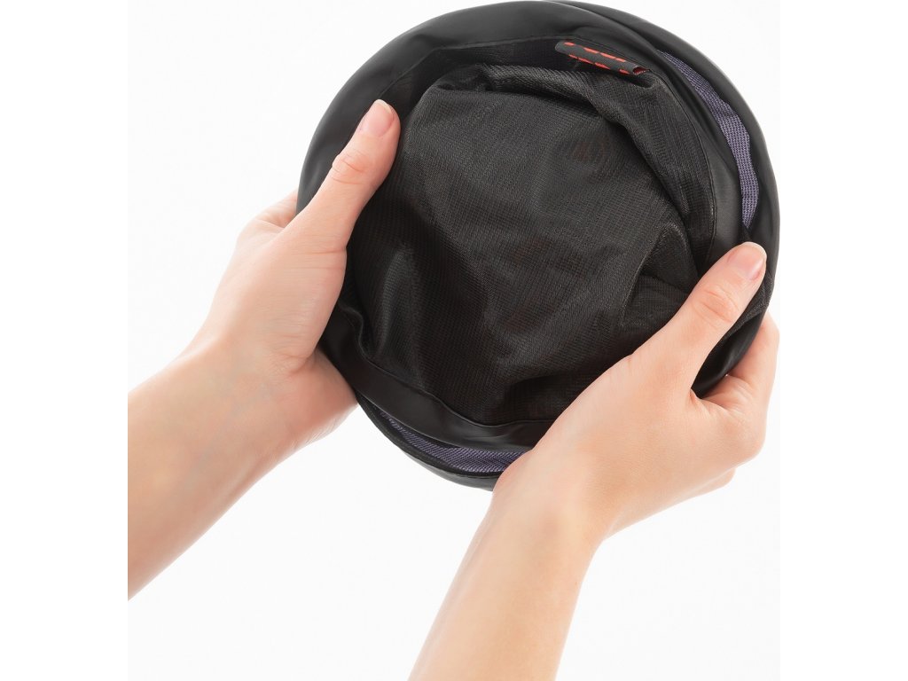 Ochranu proti slunci lze rychle a snadno složit, pokud ji za zamračeného dne nepotřebujete. To se děje ve třech jednoduchých krocích: Chcete-li to provést, musíte jednu stranu otočit o 180 °, aby se vytvořily dva kruhové konce. Tyto dva kruhy jsou poté vtlačeny do sebe a poté vloženy do úložného vaku, který jim brání v opětovném otevření.