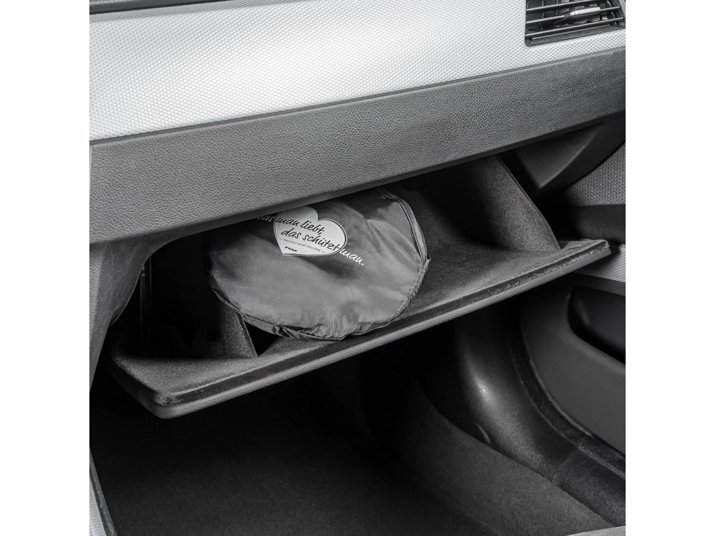 Prostorově úsporné uložení v přepravní tašce a bleskově rychlé připevnění činí ze sluneční clony ideálního společníka při cestování autobusem, vlakem nebo v autě z půjčovny.